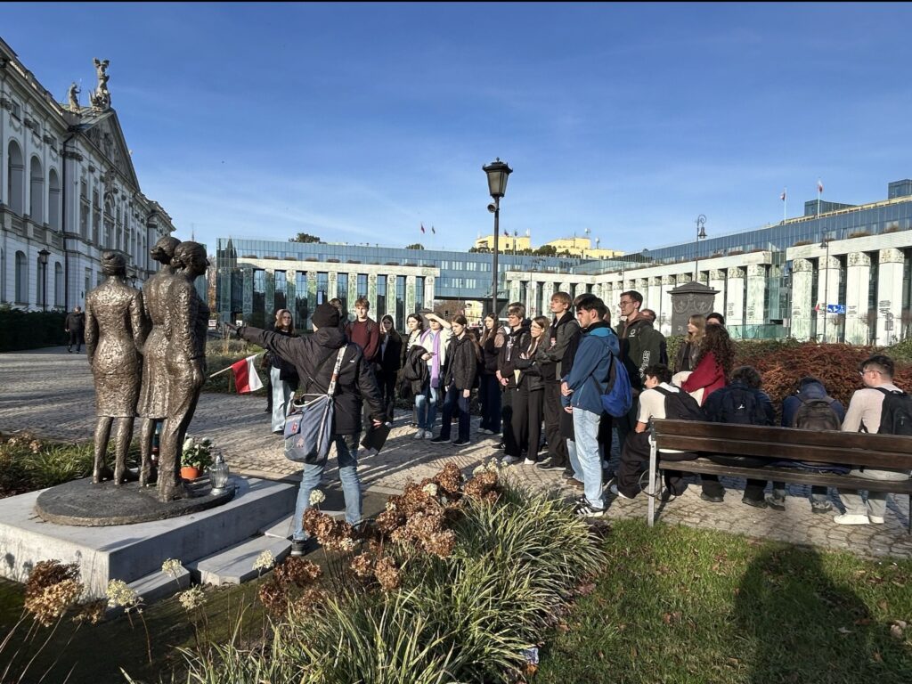 13 listopada br., uczniowie klasy 4D naszego liceum, spędzili niezapomniany dzień w stolicy. Program wycieczki obfitował w atrakcje łączące edukację, kulturę i dobrą zabawę. Pierwszym punktem była eksploracja Starego Miasta w Warszawie, która obejmowała zwiedzanie m.in. Pałacu Rzeczypospolitej na Placu Krasińskich, gdzie prezentowana jest wystawa pt. „Skarby Biblioteki Narodowej”. Uczestnicy wycieczki mieli okazję zobaczyć oryginały rękopisów literatury polskiej m.in. „Nad Niemnem” E. Orzeszkowej, „Faraona” B. Prusa czy „Wiernej Rzeki” S. Żeromskiego. Zwiedzanie objęło również Bazylikę św. Jana oraz Kościół św. Anny. Uczniowie poznali interesujące fakty dotyczące historii stolicy, w tym getta warszawskiego i powstania warszawskiego. Spacer po urokliwych uliczkach okazał się szczególnie wyjątkowy, ponieważ uczestnicy wycieczki trafili na plan filmowy ekranizacji „Lalki” Bolesława Prusa. Możliwość obserwowania pracy ekipy filmowej na żywo była dla wszystkich niezwykłym doświadczeniem. Kolejnym etapem wycieczki było Muzeum Życia w PRL przy ulicy Pięknej. Ekspozycja przeniosła uczniów w realia minionej epoki. Wśród atrakcji znalazło się doskonale odtworzone mieszkanie z tamtych lat, w którym można było zobaczyć charakterystyczne meble, dywany, sprzęty kuchenne i telewizor marki Rubin. Duże wrażenie zrobiło także miniaturowe kino oraz legendarny fiat 126p – symbol motoryzacji PRL. Uczniowie mieli okazję zobaczyć sprzęty codziennego użytku sprzed kilku dekad oraz spróbować kultowych przysmaków z tamtych czasów, co pozwoliło im lepiej poznać realia życia w okresie Polskiej Rzeczypospolitej Ludowej. Na zakończenie dnia czekał prawdziwy gwóźdź programu – spektakl „Prezent” w Teatrze Komedia. W rolach głównych wystąpili Katarzyna Figura i Marek Kalita, zachwycając publiczność znakomitą grą aktorską i dużą dawką humoru. Sztuka dotknęła trudnych tematów śmierci, żałoby i relacji rodzinnych, ale zrobiła to w sposób dowcipny i przystępny w odbiorze, podkreślając, że rodzina to schronienie nawet w najtrudniejszych momentach. Wycieczka była nie tylko okazją do integracji klasy, ale także do rozwijania zainteresowań kulturalnych i poznawania historii w inspirujący sposób.