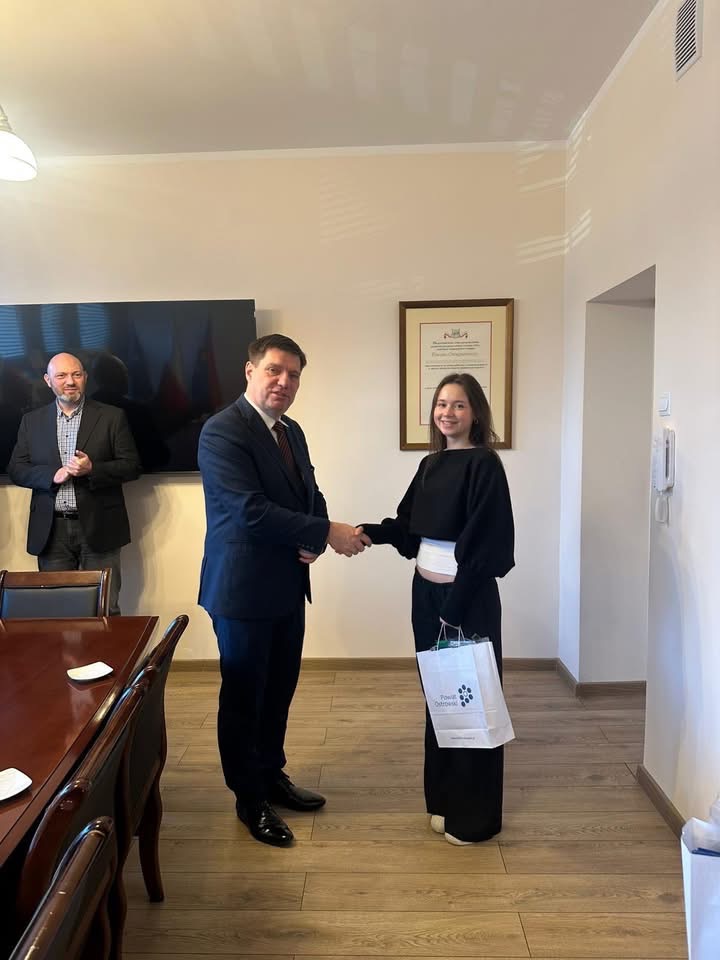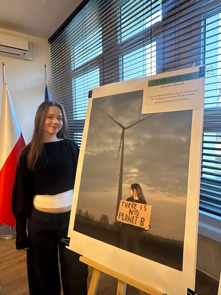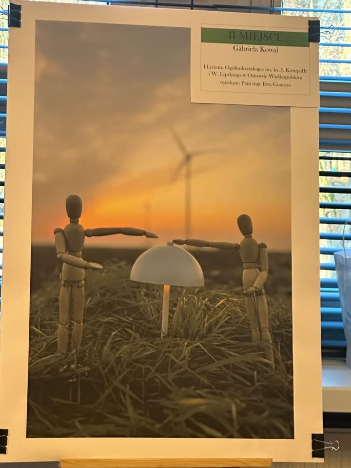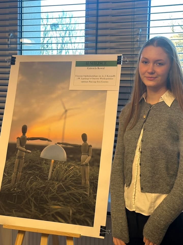 Dnia 18 grudnia w Starostwie Powiatowym odbyło się podsumowanie konkursu fotograficznego zorganizowanego przez Wydział Ochrony Środowiska Powiatu Ostrowskiego zatutułowany: „Zielona energia w Powiecie Ostrowskim”. W konkursie wzięło udział kilkudziesięciu uczniów. W konkursie przewidziano 3 nagrody: I i II miejsce oraz wyróżnienie. Dwie z nich zdobyły nasze uczennice: II nagrodę otrzymała Gabriela Kowal z klasy 1d, a wyróżnienie Antonina Staszak z klasy 2c. Nagrody wręczył Pan Starosta Radosław Torzyński.