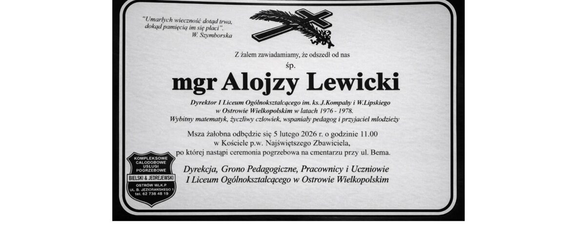 Alojzy Lewicki 16.06.1938-31.01.2026