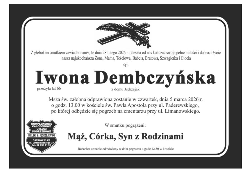 Żegnamy dzisiaj byłą nauczycielkę Iwonę Dembczyńską