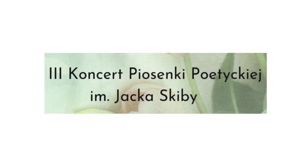 Już 31 marca odbędzie się III Koncert Piosenki Poetyckiej im. Jacka Skiby. Zaproszenia u pani Anny Przybył. Zapraszamy